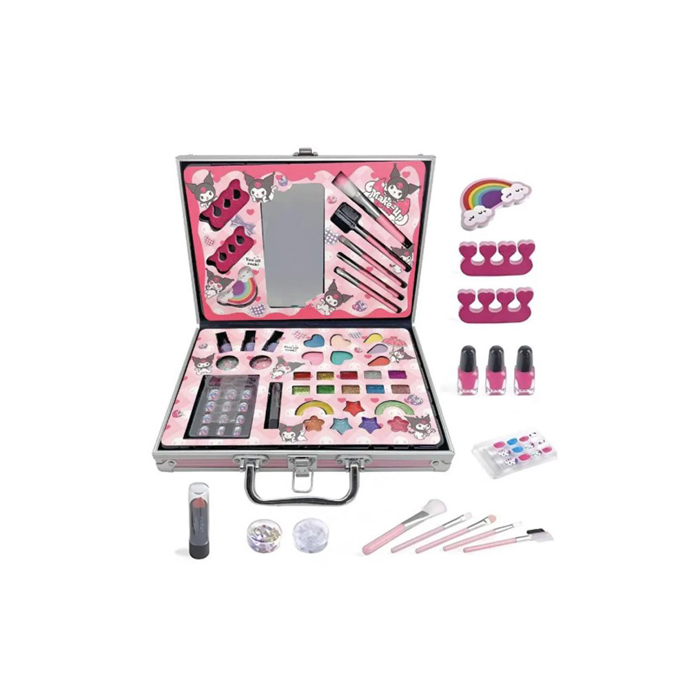 این کیف با طراحی زیبا و کرومی براق، شامل ۴۰ قطعه لوازم آرایشی کودکانه غیرسمی و ایمن هست که برای کودکان بالای ۳ سال عالیه.
