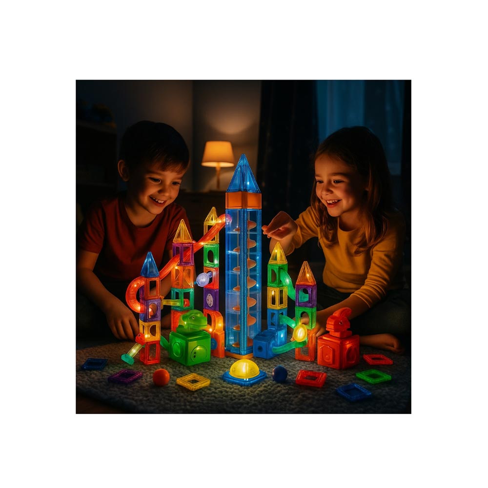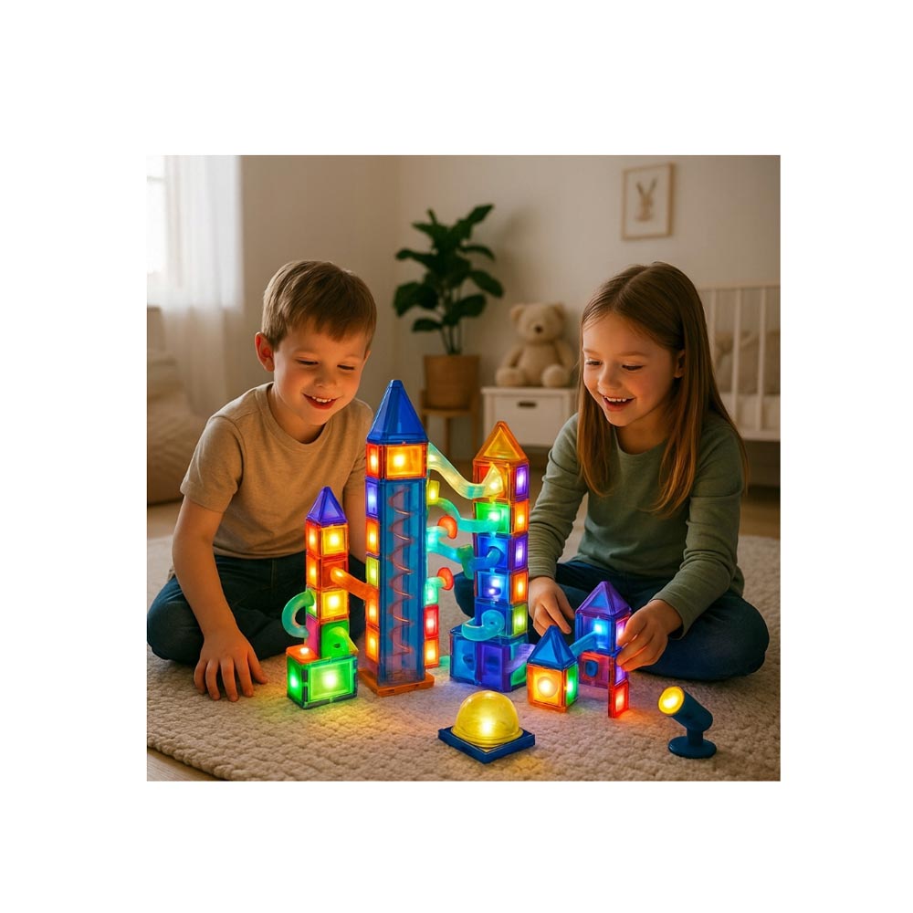 بخش‌هایی از این مجموعه دارای نور داخلی هستند که هنگام بازی، مخصوصاً در محیط کمی تاریک، جذابیت و تمرکز بیشتری برای کودک ایجاد می‌کنند.