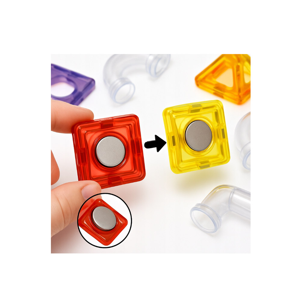 این مجموعه شامل ۱۹۴ قطعه ساختنی مغناطیسی است که با آهن‌رباهای داخلی، خیلی سریع و محکم به هم متصل می‌شوند