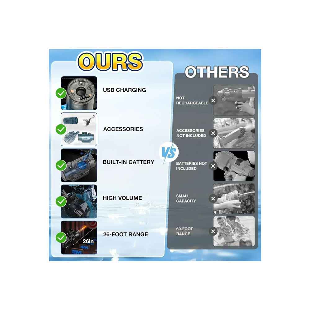 برخلاف تفنگ‌های آبی معمولی که نیاز به پمپ‌زدن دستی دارند،