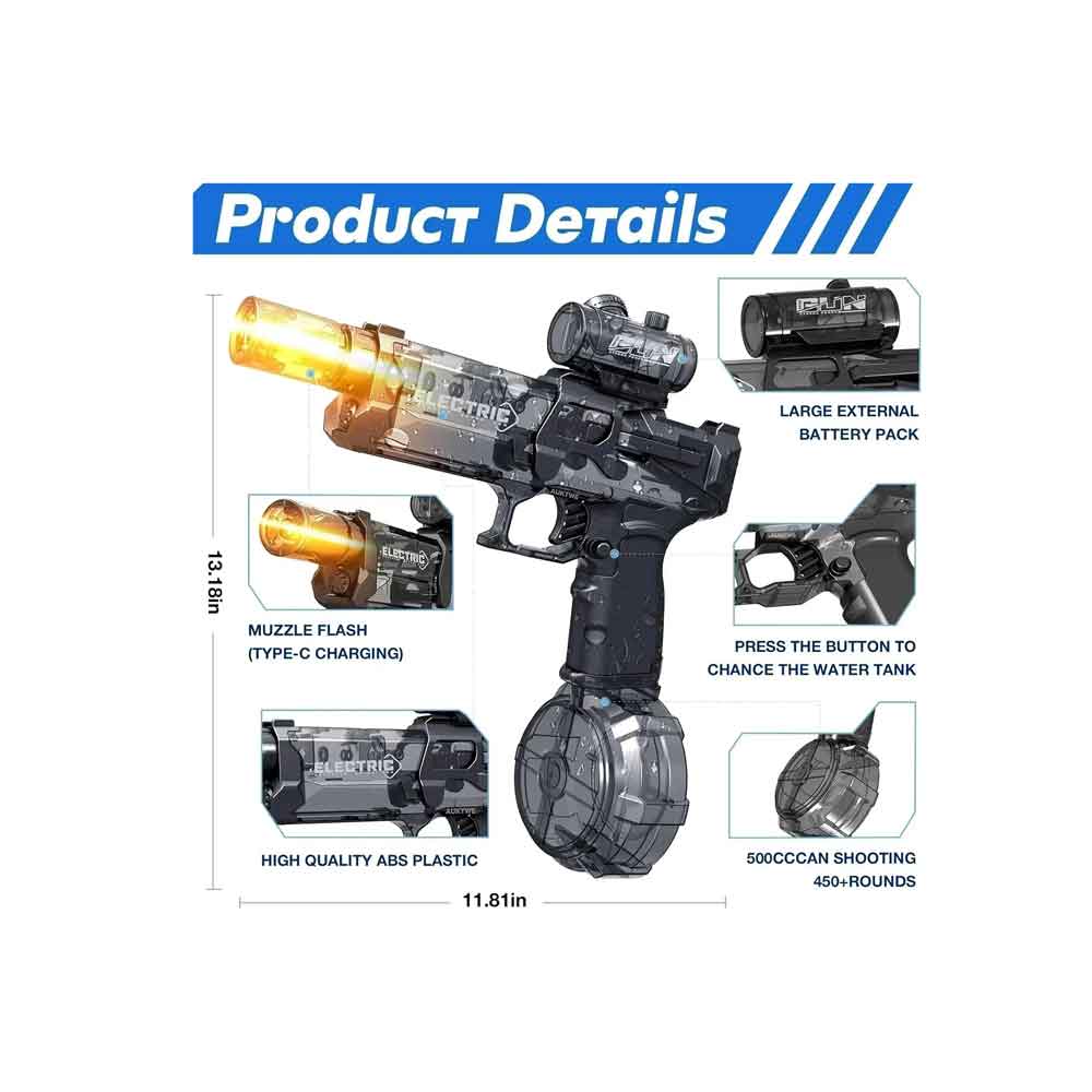 این تفنگ آبی با طراحی مدرن و قدرت پرتاب بالا، هم برای کودکان و هم برای بزرگسالان، سرگرمی بی‌پایانی فراهم می‌کند.