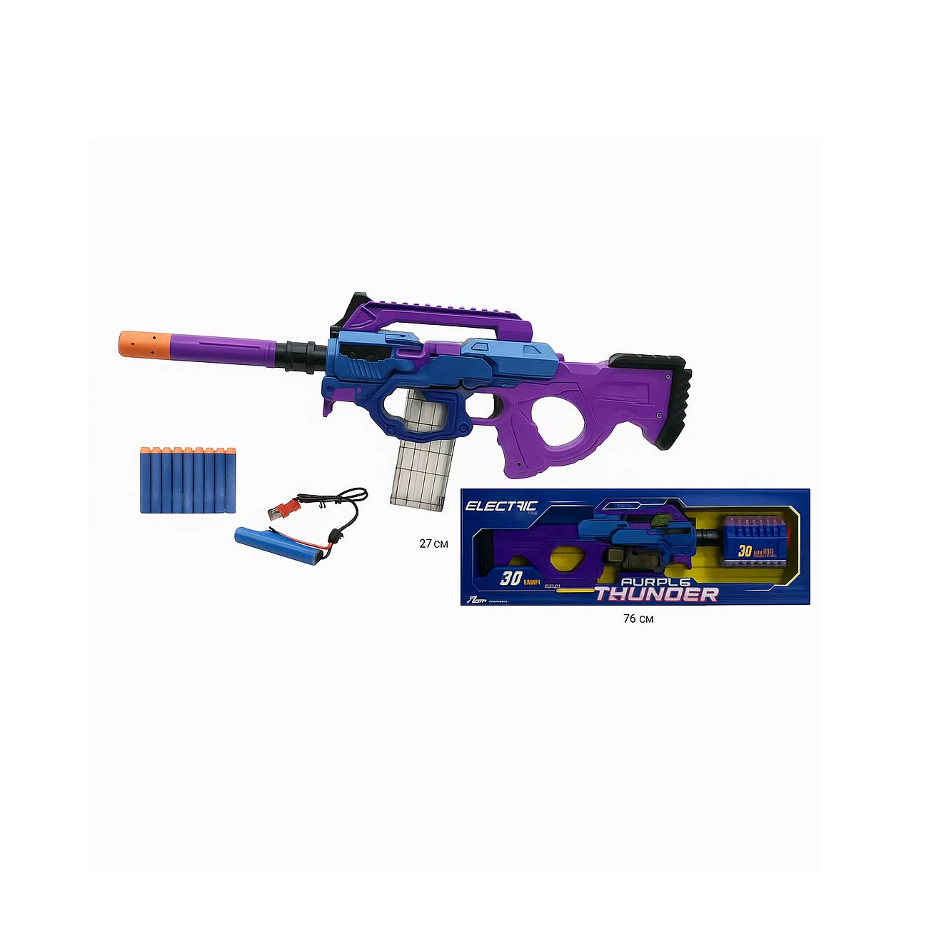 وقتی از نی نی شاپ سنتر تفنگ شارژی Purple Thunder رو می‌خری، مطمئن باش که کالای اصل با گارانتی به دستت می‌رسه.