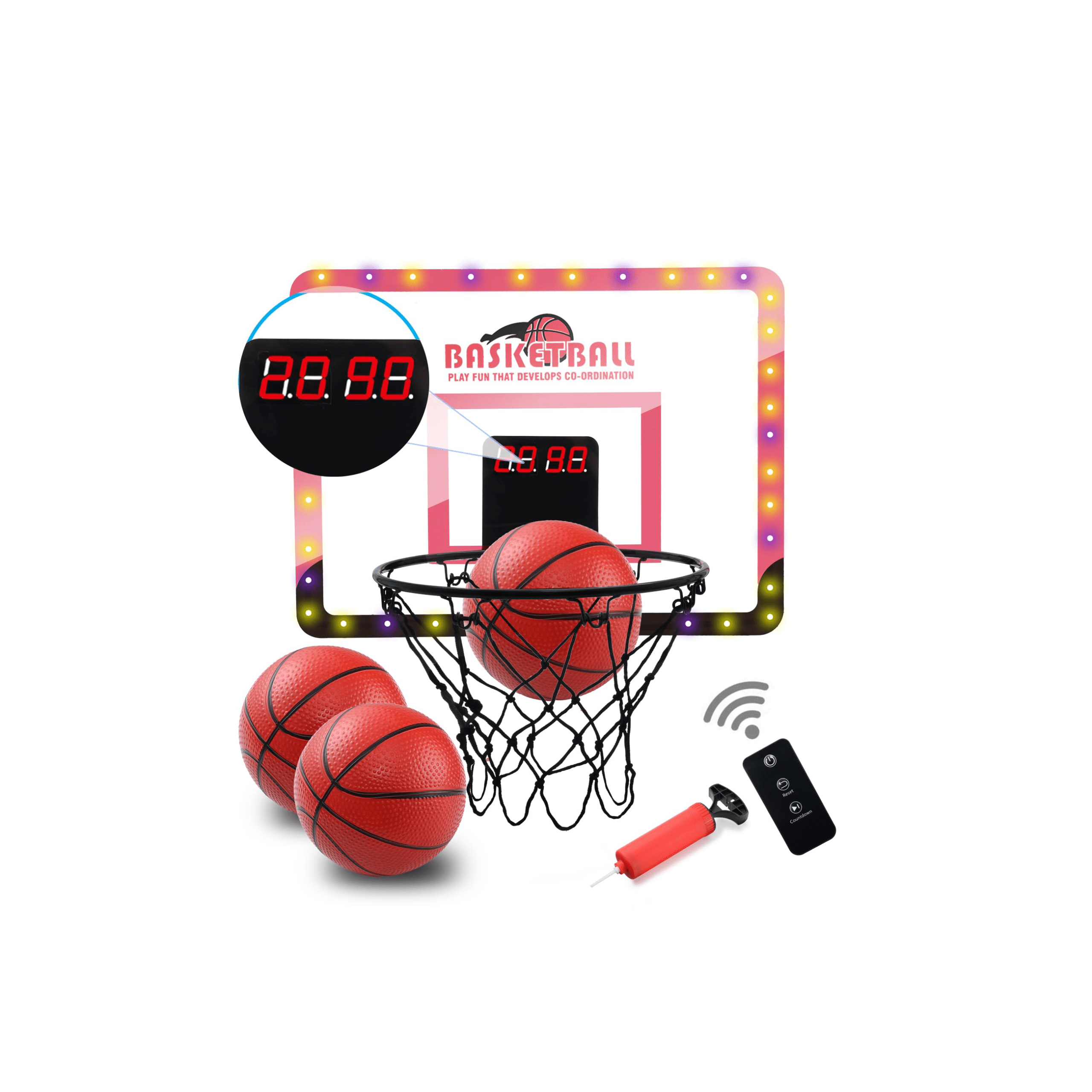 هر بار که توپ از حلقه عبور می‌کند، سنسور امتیاز را شناسایی کرده و نمایشگر LED، امتیاز شما را به‌روزرسانی می‌کند.
