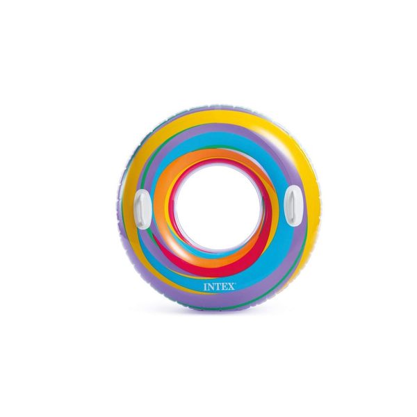 حلقه شنا رنگارنگ اینتکس مدل ۵۹۲۵۶ در دو طرف خود نیز دستگیرههایی دارد که باعث میشود بتوان آن به راحتی حمل کرد و حتی در زمان نشستن بر روی ان تعادل بهتری داشت.