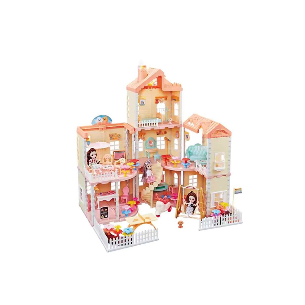 کیت خانه عروسکی – این مجموعه بازی خانه ۳ طبقه دارای ابعاد بزرگ و دارای ۷ اتاق است، همه اتاق ها در یک ویلای بزرگ با باغ ترکیب شده اند.