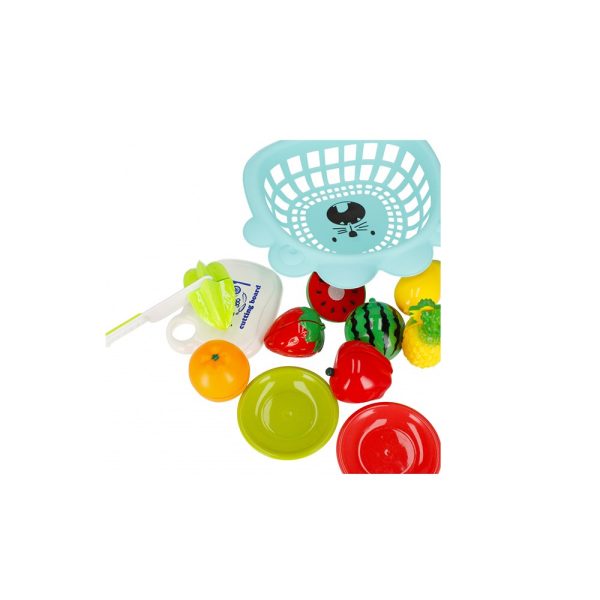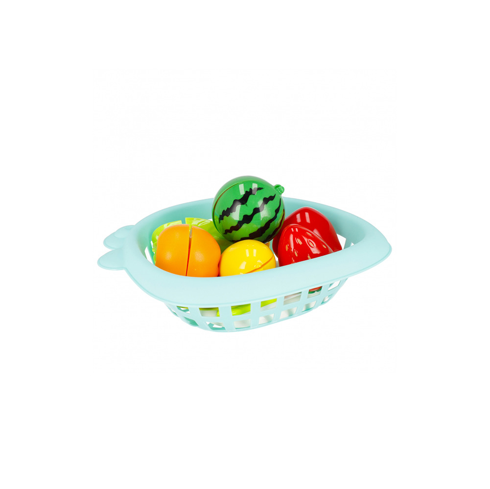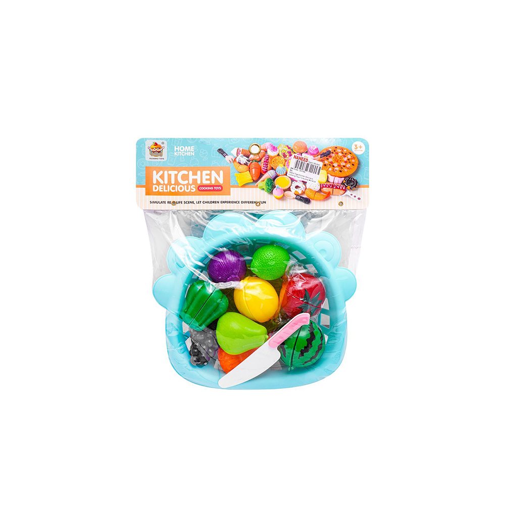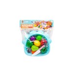 تمامی میوه ها برش خورده و به وسیله یک چسب پارچه ای به هم وصل شده اند و آماده بازی کودک هستند.