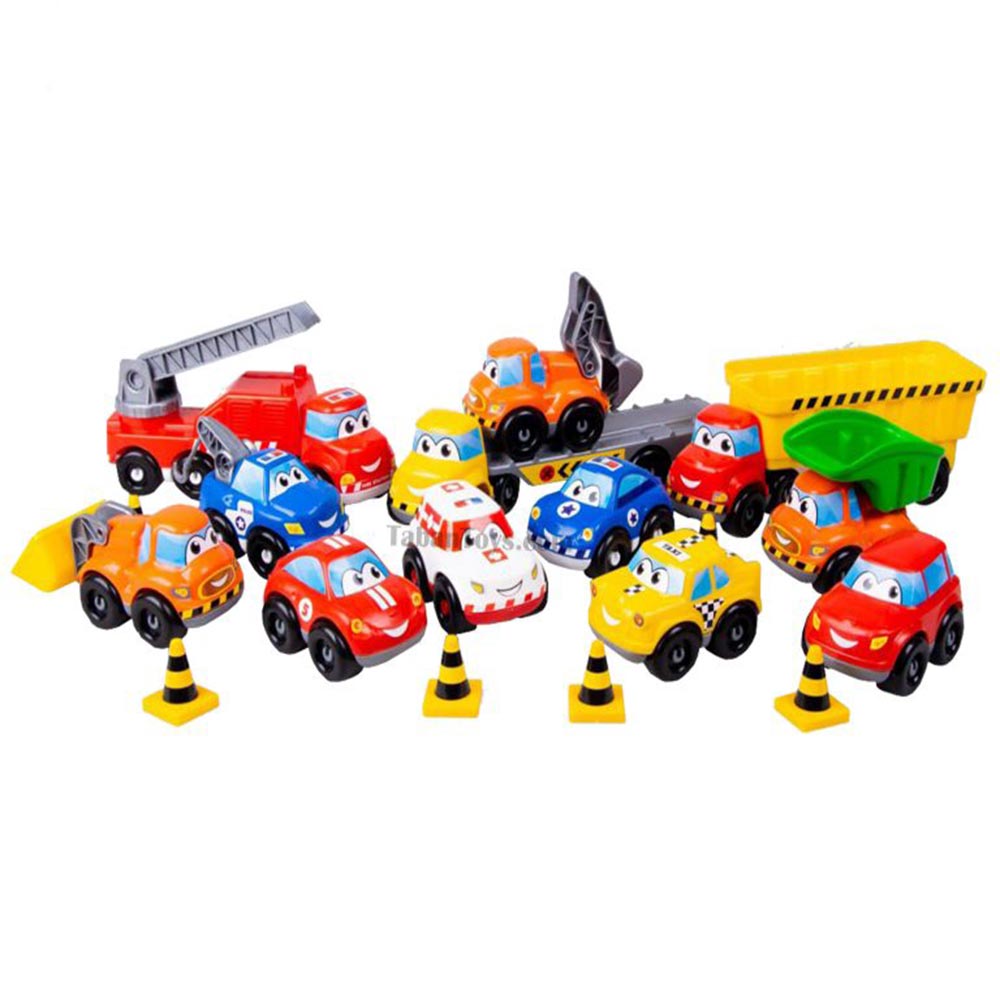 ست ماشین شهری ۱۲ عددی Zarin Toys دارای ۴ عدد چرخ پلاستیکی هستند .