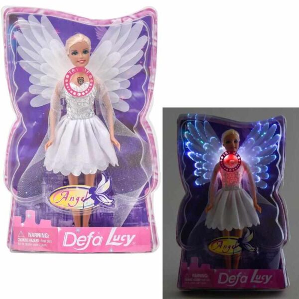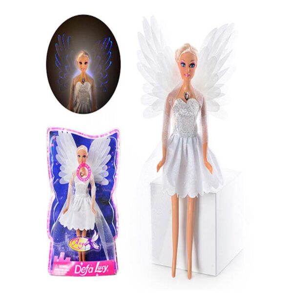عروسک باربی فرشته چراغ دار دفالوسی شامل یک عروسک با لباس سفید و بال های سفید رنگ است که زیبای خاصی دارد.