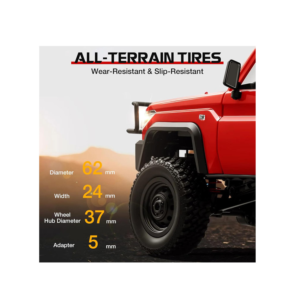 کمک میکند ماشین به راحتی از سنگ، شن، چمن، زمین ناهموار و مسیرهای چالشی عبور کند. شاسی مقاوم و انعطافپذیر برای دوام بیشتر.
