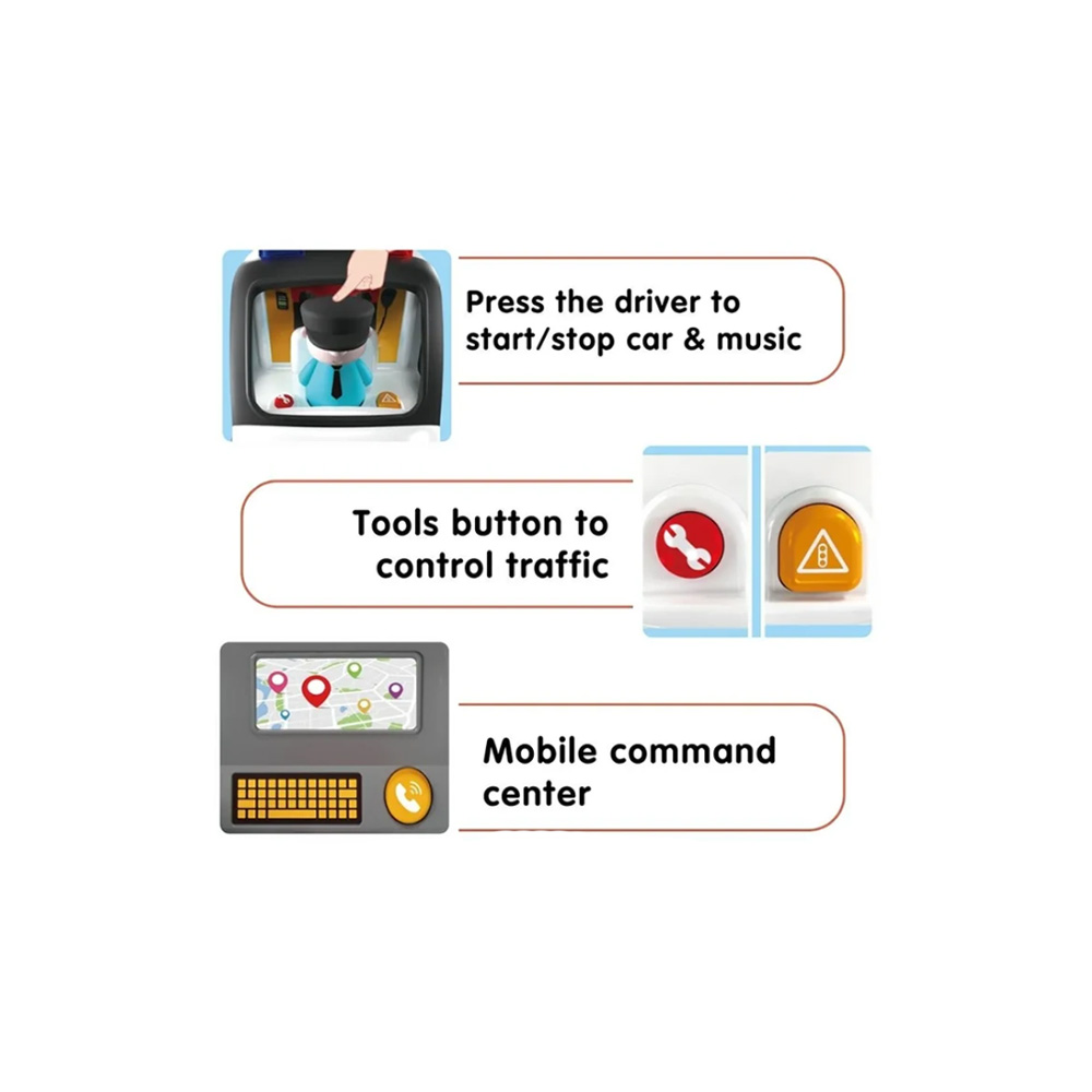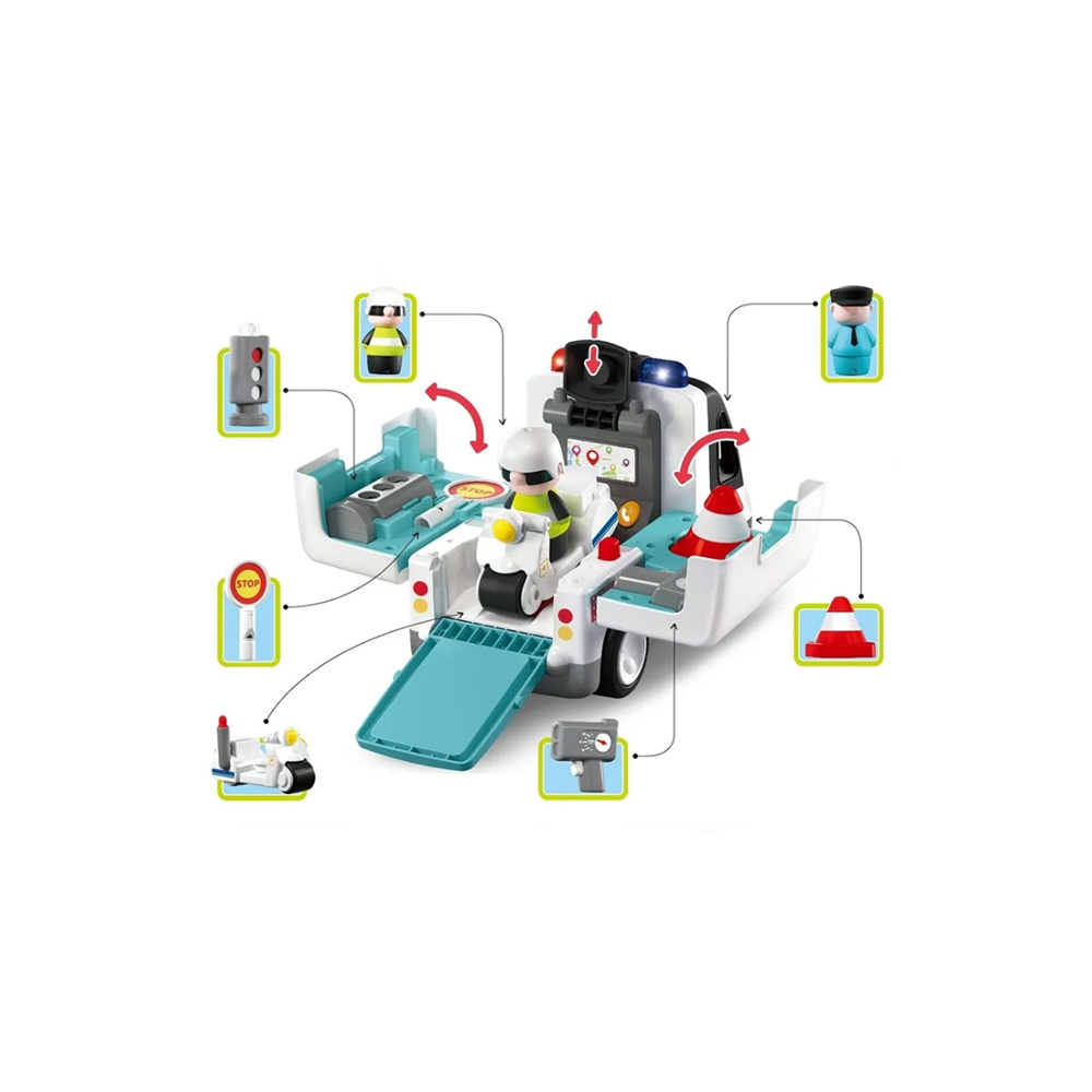 • محتویات بسته: ماشین پلیس موزیکال + راهنما