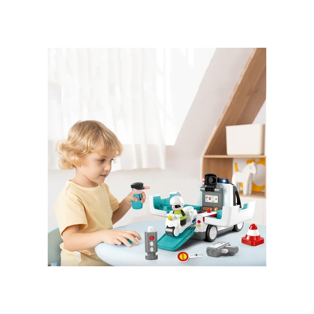 این ماشین با طراحی شاد، صداهای واقعی پلیس، چراغ‌های چشمک‌زن و حالت آموزشی،
