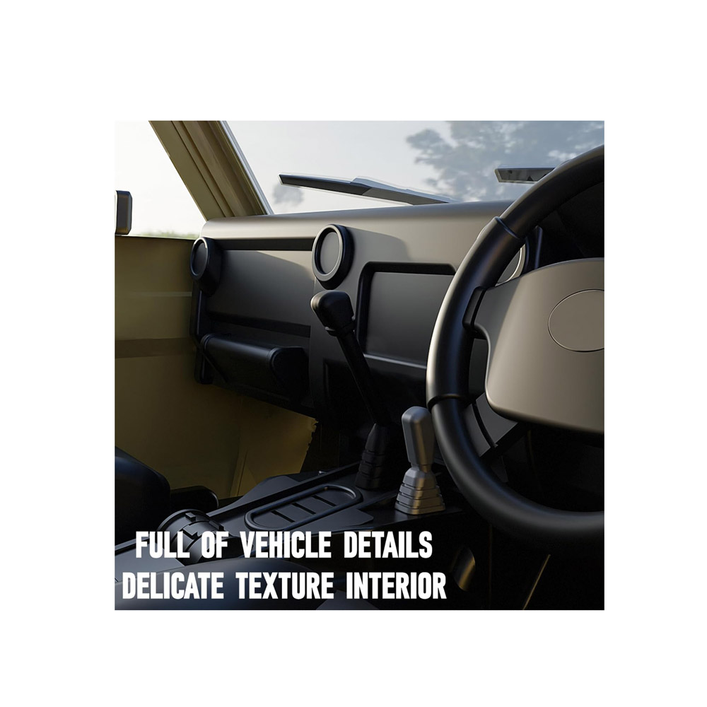 ظاهر این مدل با الهام از خودروهای آفرود واقعی طراحی شده و رنگ نقرهای متالیک آن حس قدرت و ماجراجویی را دوچندان میکند.