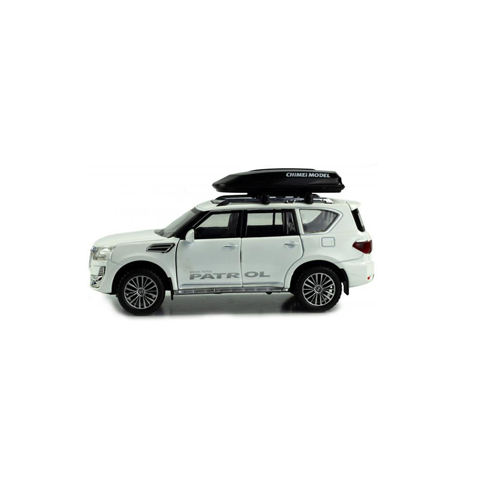 ماکت ماشین فلزی نیسان پاترول شاسی بلند بصورت موزیکال و عقب کش است و چراغ های قسمت جلو و عقب و نیز روشن می شود .
