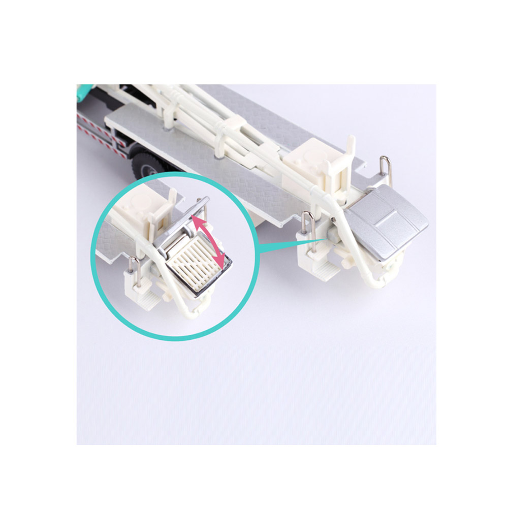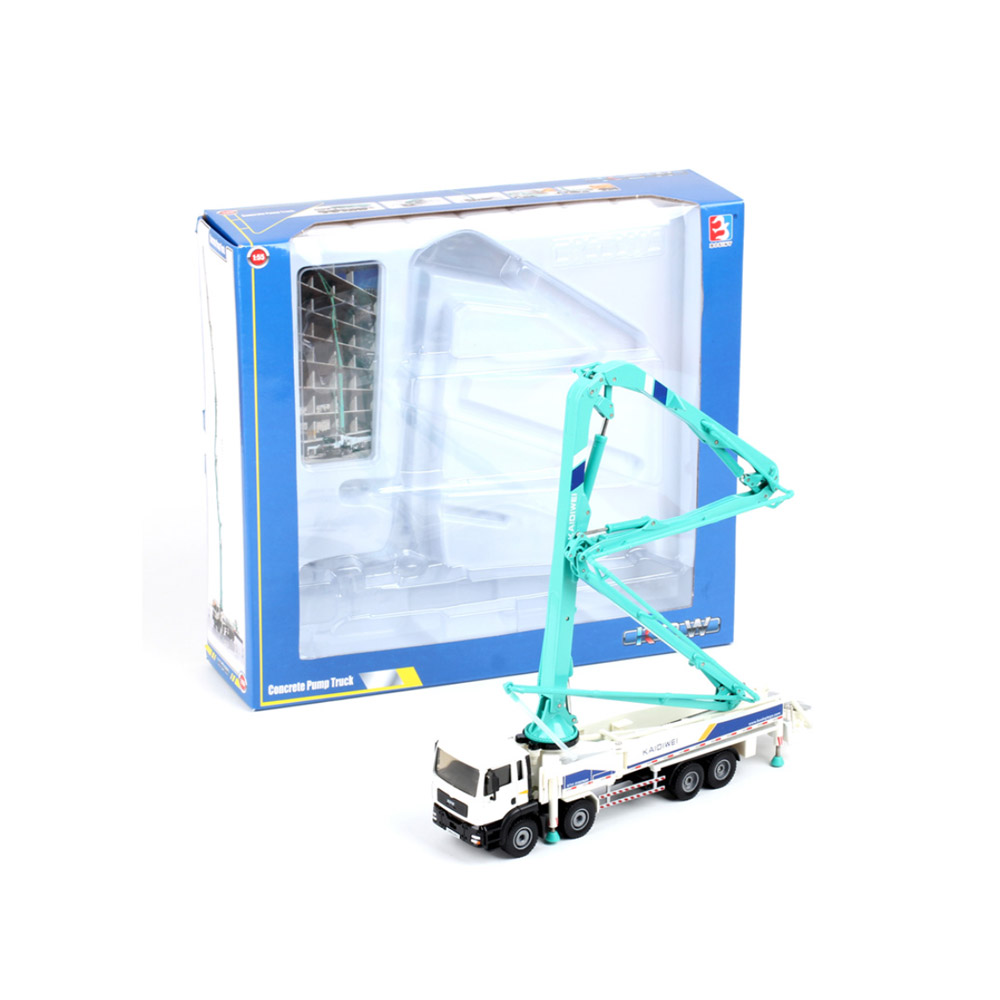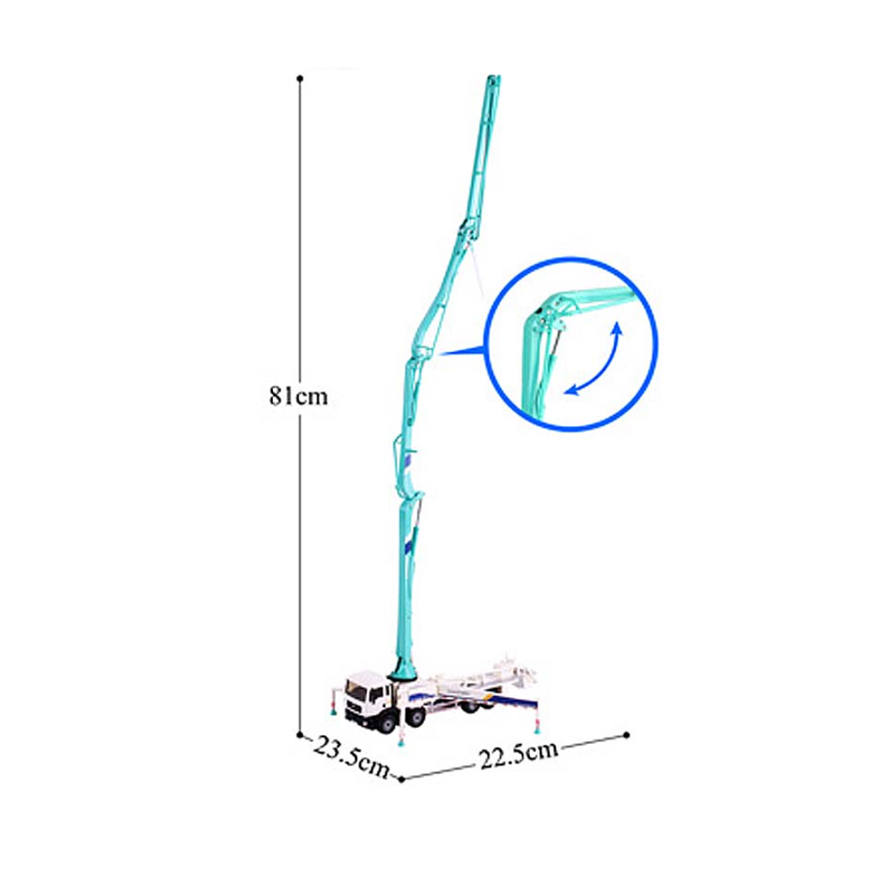 این ماکت با بدنه فلزی مستحکم و جزئیات دقیق، شباهت زیادی به کامیونهای واقعی پمپ بتن دارد.